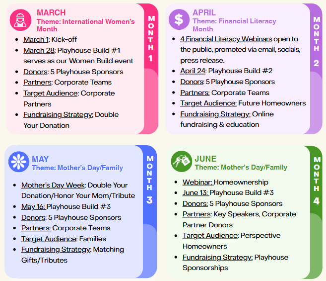 The 2026 Women Build Campaign is a dynamic, four-month initiative officially launching in March, which aligns with International Women’s Month. The campaign will focus on public fundraising, free webinars, and Mother’s Day tributes as well as sponsored playhouse builds (for corporate donors that aren’t open to the public).